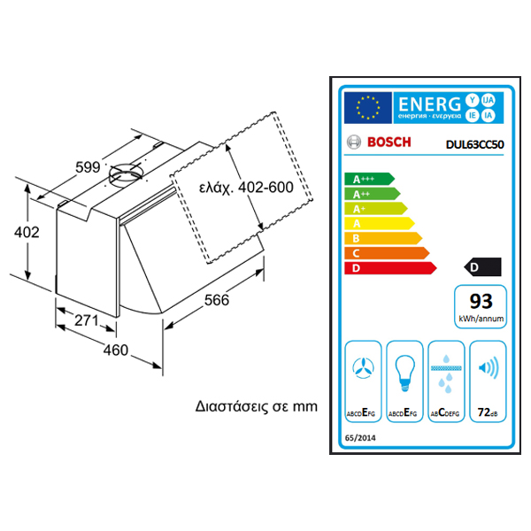 - Επίπεδα θορύβου min./max. κανονική λειτουργία: 49/70 dB (Σύμφωνα με την Ευρωπαϊκή οδηγία 65/2014)
