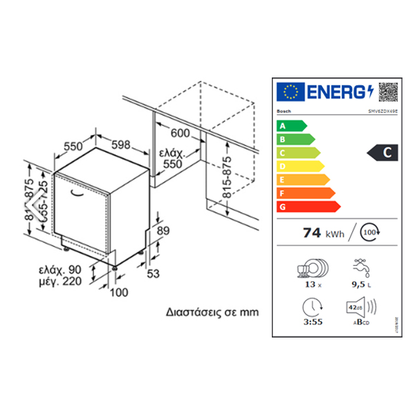 /Πλήρως εντοιχιζόμενο πλυντήριο πιάτων BOSCH SMV6ZDX49E 60cm PerfectDry