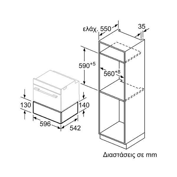 - Διαστάσεις εντοιχισμού (ΥxΠxΒ): 141 x 560 - 568 x 550 mm