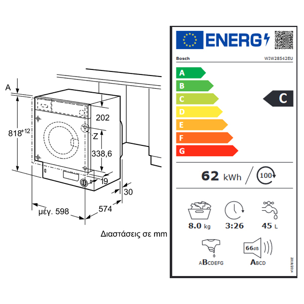 - Ενέργεια² / Νερό³: 62 kWh / 45 λίτρα