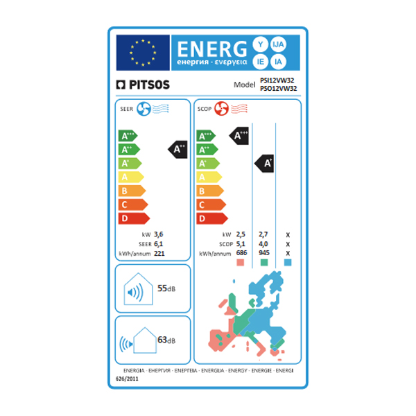 - Ενεργειακή κλάση στη θέρμανση θερμότερης εποχής: Α+++
