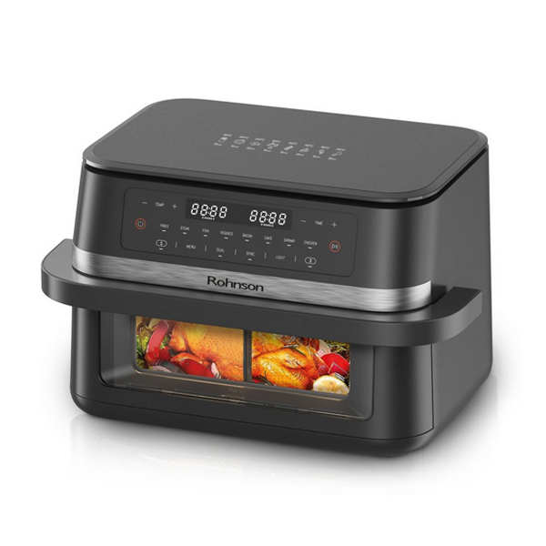 - Η συσκευή διαθέτει διπλό τζάμι, αλλά και έντονο φωτισμό στο εσωτερικό του κάδου, για να μπορείτε να παρακολουθείτε την πρόοδο της προετοιμασίας του φαγητού ανά πάσα στιγμή, χωρίς να χρειάζεται να ανοίγετε τον κάδο και να καθυστερείτε την παρασκευή των γευμάτων σας.