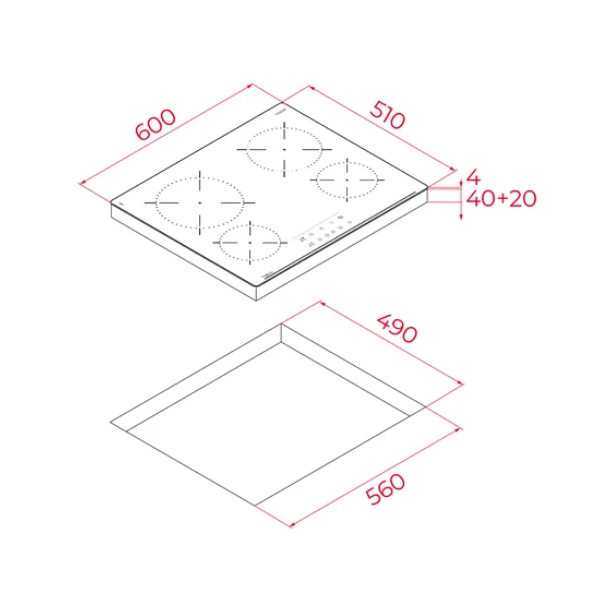 High Light: 1 ζώνη Ø 210 mm, 2.100 W - 1 ζώνη Ø 180 mm, 1.800 W - 2 ζώνες Ø 145 mm, 1.200 W