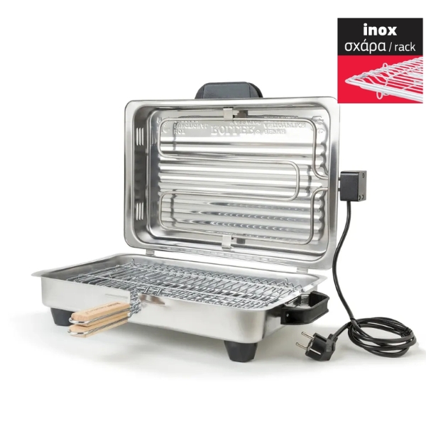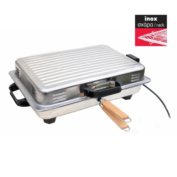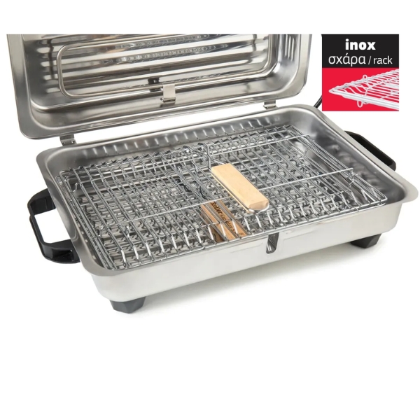 - Διπλή Inox σχάρα μεσπαστές ξύλινες χειρολαβές για εύκολη αποθήκευση.