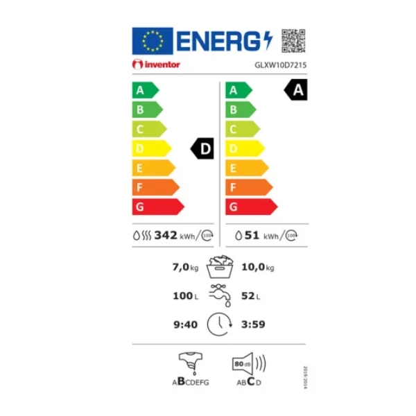 - Κατανάλωση Ενέργειας: 342 kwh/100 κύκλους